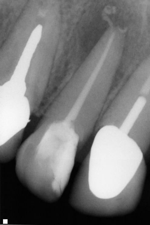 We had a chat and took the picture above which confirms that there is almost no root canal present and therefore the tooth is almost impossible to restore. However, with time, skill and a good bit of determination it is often possible to get down these impossible canals, and save the tooth.